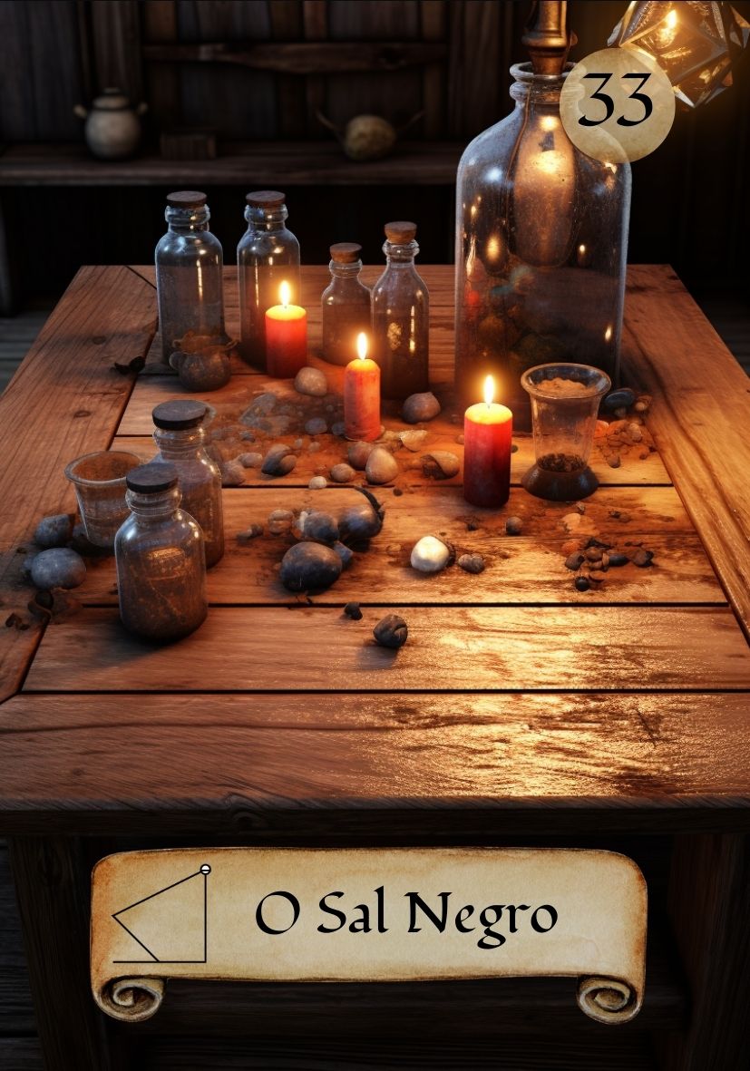 O Sal Negro é forte proteção e banimento. Ele limpa o campo, corta influências negativas e fortalece defesas espirituais. Quando surge, indica necessidade de fechamento e proteção.